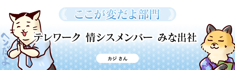 - 今回部門別に募集してみたけど、テレワークやDXをテーマにした川柳が多くて、時代を反映してるな~と思ったねぇ。ぼくら一般社員はテレワークもDXもありがたいんだけど、その裏には情シスのみんなの苦労があるんだね~。