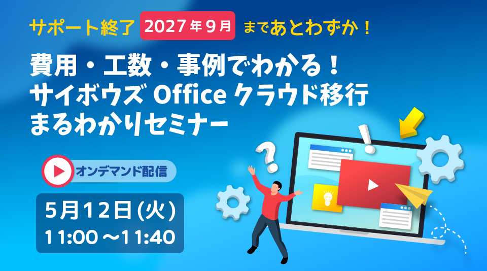 | セミナー名 | サポート終了「2027年9月」まであとわずか! 費用・工数・事例でわかる!サイボウズ Office クラウド移行まるわかりセミナー |